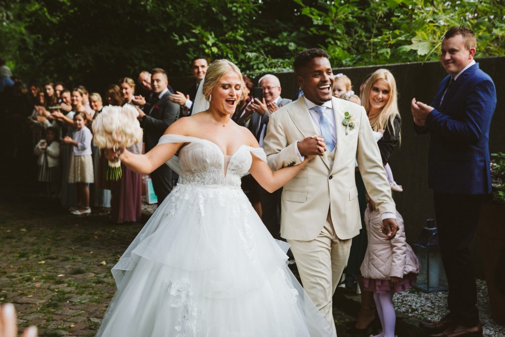 Authentische Hochzeitsbilder im Fotojournalismus entstehen durch eine entspannte Atmosphäre während der Hochzeit und offenes Vertrauen zwischen Fotograf und Brautpaar. Der Fotograf agiert diskret und fängt spontane Emotionen ein.